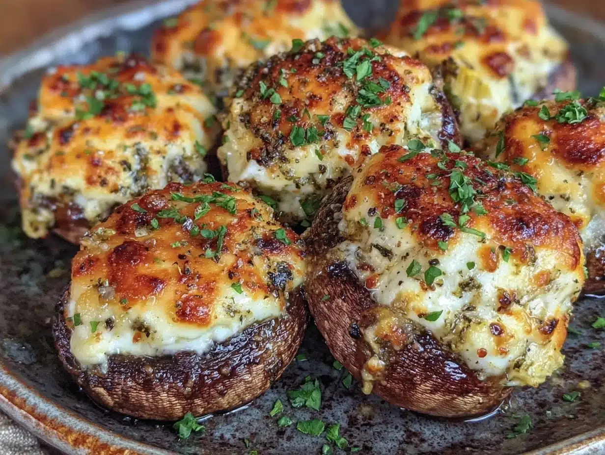 Creamy Artichoke and Spinach Stuffed Mushrooms