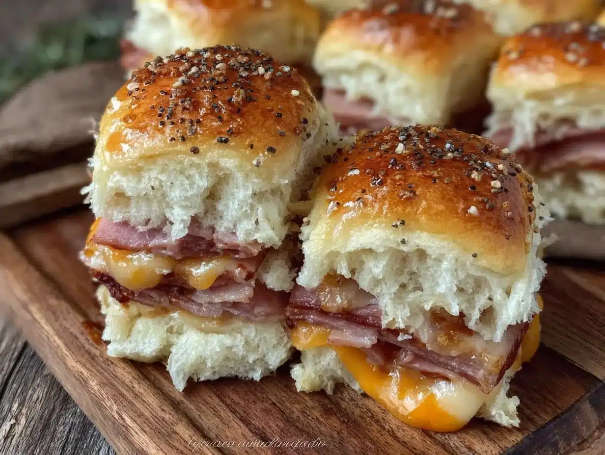 Keywords: ham sliders, cheese sliders, baked sliders, party appetizer, easy recipe, comfort food, quick snack