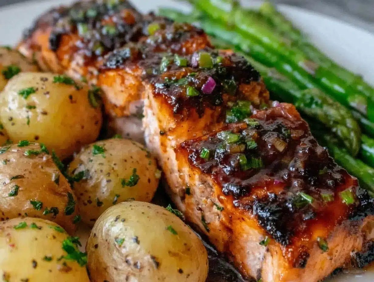 What makes this recipe stick with me isn’t just the flavors—though the sweet and savory glaze paired with tender salmon is a winner—it’s the way everything feels effortless yet satisfying. I mean, I once forgot to preheat the oven, and while I was busy cleaning up that little mishap, the potatoes still came out beautifully roasted. Maybe you’ve been there, cooking with one eye on the timer and the other on your phone, hoping the meal turns out edible.